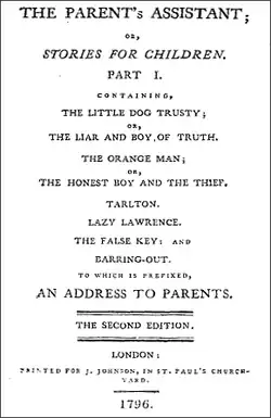 - ^ Edgeworth, Maria. 1796, 1865. The Parent's Assistant, or Stories for Children, Ashmead and Evans, Philadelphia.