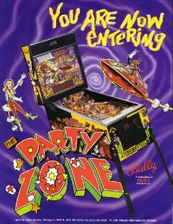 The Party Zone is a solid-state pinball machine released in 1991 by Midway (under Bally) designed by Dennis Nordman and programmed by Jim Strompolis. It is in a single playfield format and features Captain B. Zarre with characters from previous pinball machines. It is the second pinball machine released after the Bally-Midway division was sold to Williams, but still operated under the "Bally" name.