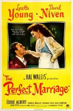 The Perfect Marriage is a 1947 American comedy film directed by Lewis Allen and written by Leonard Spigelgass. The film stars Loretta Young, David Niven, Eddie Albert, Charlie Ruggles, Virginia Field, and Rita Johnson. The film was released on February 24, 1947, by Paramount Pictures.[2]
