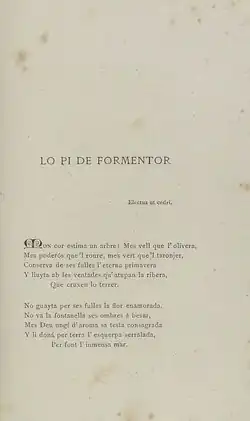 The Pine of Formentor (Catalan: Lo Pi de Formentor, Spanish: El pino de Formentor) is one of the most well-known and celebrated poems by Miquel Costa i Llobera. Technically, it is considered as the culmination of Romantic poetry in Catalan literature.[1]