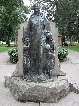 The Pioneer Mother Memorial, also known as Pioneer Mother and Pioneer Mothers,[1][2] is a 1928 bronze sculpture by American artist Avard Fairbanks, installed at Esther Short Park in Vancouver, Washington, in the United States. The memorial depicts a mother and three children, and commemorates pioneer mothers who settled in the Pacific Northwest. The main female figure may depict Esther Short, one of the first U.S. citizens to arrive in Fort Vancouver. Commissioned by Vancouver banker Edward Crawford and his wife Ida for $10,000, it is one of the city's oldest works of public art, acquired in 1928 and unveiled in 1929. The sculpture was renovated around the start of the 21st century and is maintained by the City of Vancouver's Parks & Recreation department.