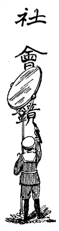 The novel, written in Literary Chinese, was first published in 53 instalments in the Chinese Times newspaper in Melbourne, between 5 June 1909 and 10 December 1910. Each installment was accompanied by an illustration of a young boy holding up a mirror to the Chinese character for "Society".[5] Its author Wong Shee Ping was an editor of the newspaper.[3] It was rediscovered by historian Mei-fen Kuo while she was researching early Chinese-Australian newspapers.[6][7]
