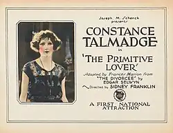 The Primitive Lover is a 1922 American silent drama film produced by and starring Constance Talmadge and distributed by Associated First National (later First National Pictures). Sidney A. Franklin served as the director of the movie and Frances Marion wrote the scenario based on a play, The Divorcee, by Edgar Selwyn. This film survives and has been released on DVD.[1][2][3]