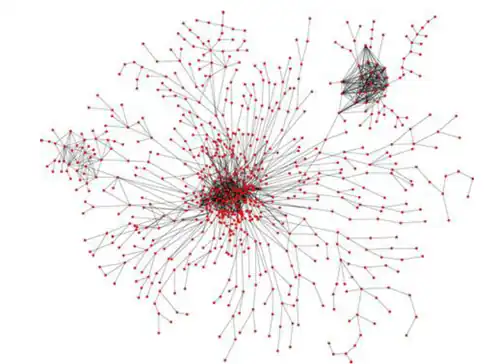 The basic "skeleton" of the network is developed by imposing on it the strongest links which were not necessarily in the MST by employing a threshold on the proximity values; they chose to include all links of proximity greater than or equal to 0.55. This produced a network of 775 nodes and 1525 links. This threshold was chosen such that the network exhibited an average degree equal to 4, a common convention for effective network visualizations. With the framework complete, a force-directed spring algorithm was used to achieve a more ideal network layout. This algorithm considers each node to be a charged particle and the links are assumed to be springs; the layout is the resulting equilibrium, or relaxed, position of the system. Manual rearranging untangled dense clusters to achieve maximum aesthetic efficacy.