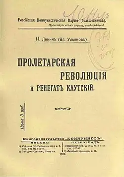 The Proletarian Revolution and the Renegade Kautsky[a] (PRRK)[1] is a political pamphlet written in October-November 1918 by Vladimir Lenin. In this work, he defends the newly formed Soviet government against criticisms leveled against it by Karl Kautsky, a leader of the Social Democratic Party of Germany (SPD) and the Second International, and also a mentor to many Bolsheviks.[2]