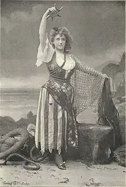 Besides Russell the British cast included Hubert Wilke as Florian, Arthur Williams as Della Fontana, George Honey as Fritz, Avon Saxon as Major Victor Pulvereitzer, W. H. Denny as Lucca Rabbiato, an itinerant knife grinder, Annie Meyers as Orsola, wife of Lucca Rabbiato, and John Le Hay as Grelotto.[4] In London, the dances were arranged by John D'Auban and the scenery was painted by Hawes Craven (Act I), Joseph Harker (Act II) and William Perkins (Act III).[6] The American cast included Wilke, Meyers, Digby Bell as Della Fontana and Laura Joyce Bell as Madame Engelstein.[3][7]