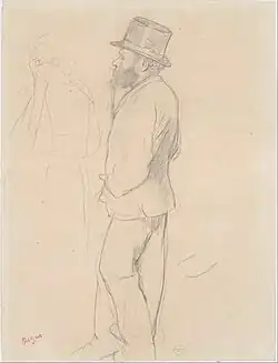 Longchamp quickly became well known and was a popular spot for upper-class visitors. While its most popular times were during racing season, from April to September, it was still used for social events during the off-season.[5][4] Most visitors did not follow the races closely, instead using the pretext of the race to socialize. Attendees included artists such as Manet and Degas (who sketched Manet at Longchamp). The Jockey Club put together races such as the Grand Prix and paid out the rewards to the winning horses, often using money raised by outside sources. For example, the first Grand Prix in 1863 was funded by both Paris and the five main rail companies in France.[5]