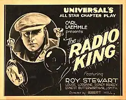The Radio King is a 1922 American adventure film serial directed by Robert F. Hill and released by the Universal Film Manufacturing Co. The ten chapters began with "A Cry for Help" released October 22, 1922. The film is now considered to be a lost film.[1]