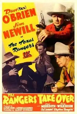 The Rangers Take Over is a 1942 American Western film directed by Albert Herman and written by Elmer Clifton. The film stars Dave (Tex) O'Brien, Jim Newill, Guy Wilkerson, Iris Meredith and Cal Shrum and his "Rhythm Rangers". The film was released on December 25, 1942, by Producers Releasing Corporation.[1][2][3]