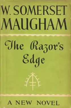 The Razor's Edge is a 1944 novel by W. Somerset Maugham. It tells the story of Larry Darrell, an American pilot traumatized by his experiences in World War I, who sets off in search of some transcendent meaning in his life. Maugham is the narrator whose narration takes the form of relating his conversations and reactions to the characters. He finds Larry both mystifying and compelling. The story begins through the eyes of Larry's friends and acquaintances as they witness his personality change after the war. His rejection of conventional life and search for meaningful experience allows him to thrive while the more materialistic characters suffer reversals of fortune.