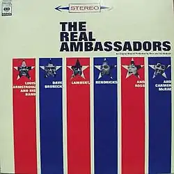 The Real Ambassadors is a jazz musical developed in the late 1950s and early 1960s by Dave and Iola Brubeck, in collaboration with Louis Armstrong and his band. It addressed the Civil Rights Movement, the music business, America's place in the world during the Cold War, the nature of God, and a number of other themes. It was set in a fictional African nation called Talgalla, and its central character was based on Armstrong and his time as a jazz ambassador.[1] It was the first major large scale musical collaboration between Dave and Iola Brubeck and served as a template for their future musical collaborations. Songs from the musical were recorded by Columbia Records and a soundtrack album was released in 1962, just before the show's premiere at the 1962 Monterey Jazz Festival with an all star cast.[2]