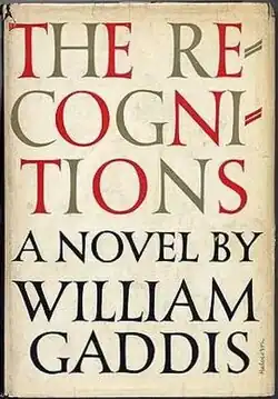 The Recognitions is the 1955 debut novel of American author William Gaddis. The novel was initially poorly received by critics. After Gaddis won a National Book Award in 1975 for his second novel, J R, his first work gradually received new and belated recognition as a masterpiece of American literature.[1]