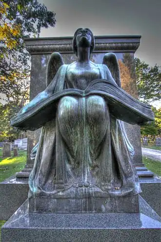 The angel was sculpted by Lorado Taft.[2] He was commissioned to create the sculpture by his friend, Clarence Addison Shaler, in memory of his wife, Blanche.