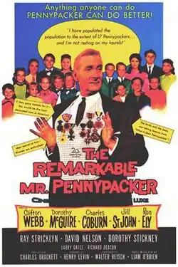 The Remarkable Mr. Pennypacker is a 1959 American DeLuxe Color comedy film starring Clifton Webb and Dorothy McGuire directed by Henry Levin in CinemaScope. The film is based on the 1953 Broadway play of the same title, which ran for 221 performances and which had featured Burgess Meredith as Horace Pennypacker and Martha Scott as 'Ma' Pennypacker.