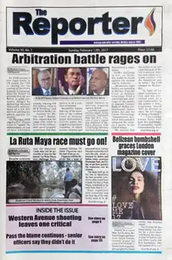The Reporter is one of the chief newspapers of Belize. It was established in 1967 by publisher Harry Lawrence, who has authored every issue since. It is published weekly and sells for BZ $1.00. The Reporter's tagline is "Independently Serving Belize since 1967."