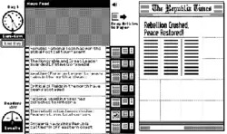 The player takes on the role of the news editor of The Republia Times, a leading newspaper in the fictional authoritarian nation of Republia.[a] The player determines which stories are included in each day's issue of the Times, and how much prominence each story receives. The player has to balance publishing pro-government stories to convince a skeptical public to support the oppressive government, while also publishing popular gossip stories to increase readership. The player must carefully choose which stories to publish, as the government is holding the editor's family hostage.[2][3]