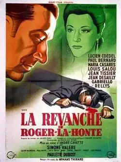 The Revenge of Roger (French: La revanche de Roger la Honte) is a 1946 French historical crime film directed by André Cayatte and starring Lucien Coëdel, María Casares and Paul Bernard. The film is based on a novel by Jules Mary.[1] It was a sequel to the film Roger la Honte also directed by Cayatte which had been shot in 1945 but was released in 1946. The film's sets were designed by the art director Jacques Colombier.