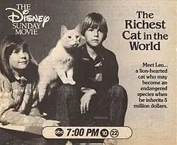 The Richest Cat in the World is a 1986 American made-for-television adventure drama film directed by Greg Beeman and released by Walt Disney Television. It originally aired March 9, 1986 as a presentation of The Disney Sunday Movie on ABC.[1]