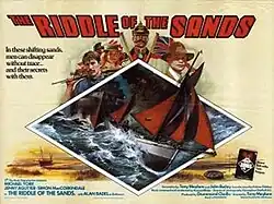 The Riddle of the Sands is a 1979 British spy thriller cinema film based upon the novel of the same name written by Erskine Childers. Set in 1901, and starring Michael York, Simon MacCorkindale and Jenny Agutter, it concerns the efforts of two British yachtsmen to avert a plot by the German Empire to launch a seaborne military invasion of the United Kingdom.[2]