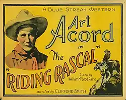 The Ridin' Rascal is a 1926 American silent Western film directed by Clifford Smith based upon the novel Mavericks by William MacLeod Raine. The film stars Art Acord, Olive Hasbrouck, and Buck Connors.[1][2]