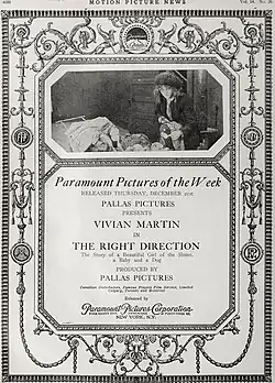 The Right Direction is a 1916 American comedy silent film directed by E. Mason Hopper, written by Julia Crawford Ivers, and starring Vivian Martin, Colin Chase, Herbert Standing, Alfred Hollingsworth, Billy Mason and Baby Jack White. The film was released on December 21, 1916, by Paramount Pictures.[1][2]