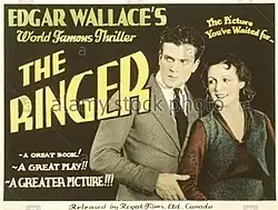 The Ringer is a 1931 British crime film directed by Walter Forde and starring Patric Curwen, Esmond Knight, John Longden and Carol Goodner. Scotland Yard detectives hunt for a dangerous criminal who has recently returned to England.[1] The film was based on the 1925 Edgar Wallace story The Gaunt Stranger, which is the basis for his play The Ringer.[2] Forde remade the same story in 1938 as The Gaunt Stranger. There was also a silent film of The Ringer in 1928, and a 1952 version starring Donald Wolfit.[3]