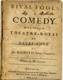 The Rival Fools is a 1709 comedy play by the British writer Colley Cibber. It drew inspiration from the earlier play Wit at Several Weapons. Despite Cibber's previous record of turning out hits, it was not a great success.
