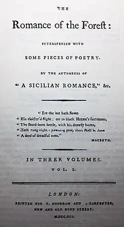 - ^ Radcliffe, Ann. The Romance of the Forest. New York: Oxford University Press, 2009, p. 5.