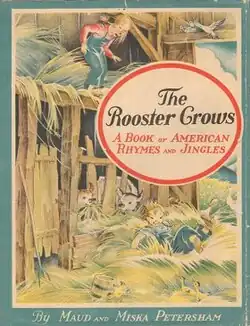 The Rooster Crows: A Book of American Rhymes and Jingles, written and illustrated by Maud and Miska Petersham, is a 1945 picture book published by The Macmillan Company. The Rooster Crows was a Caldecott Medal winner for illustration in 1946.[1] This book is a collection of traditional American nursery rhymes, finger games, skipping rhymes, jingles, and counting-out rhymes. They come from collections all over America.