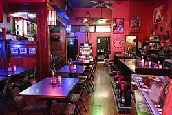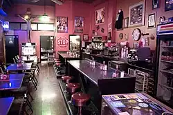 The Roxy was a diner on Southwest Harvey Milk Street in downtown Portland. The restaurant's small storefront neighbors were the gay bar Scandals and a residential hotel.[1][2] The Roxy served American cuisine,[3] including breakfast all day,[4] and was described as having a "funky avant-garde theme".[5] The interior featured a jukebox and a sculpture of Jesus.[1] Depictions of nude women appeared on an overhead mirror.[6] Prior to the COVID-19 pandemic, the diner was open 24 hours a day,[5][7] except on Mondays.[6][8] Scandals patrons could order food from The Roxy and consume from inside the bar.[9][10]