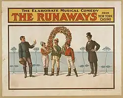 The Runaways (Broadway, 1903), originally Chow Chow (Chicago, 1902), was an American comedy musical with book and lyrics by Addison Burkhardt and music by Raymond Hubbell.[1][2] The show was joined by Fay Templeton when it came to Broadway.[3][4] The musical is set at a club and race track in Saratoga County, New York, and on the fictional Isle of Table d'Hote. The musical may be the origin of the phrase How much wood would a woodchuck chuck?.[5][6]