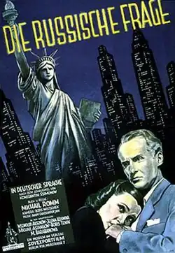 The Russian Question (Russian: Русский вопрос, Russkiy vopros) is a Soviet political drama by renowned filmmaker Mikhail Romm.[1] Shot at the Mosfilm studio, the film is an adaptation of a play of the same name by Soviet poet and journalist Konstantin Simonov.[2][3]
