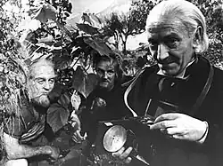 ![]() The Doctor being observed by the savages Chal and Tor | |||