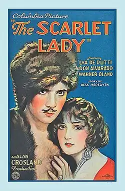 The Scarlet Lady is a 1928 American synchronized sound drama film, written by Bess Meredyth and directed by Alan Crosland. While the film has no audible dialog, it was released with a synchronized musical score with sound effects using the sound-on-film Western Electric Sound System process. It was produced and distributed by Columbia Pictures.[1][2] This film is important historically as it was the first sound feature released by Columbia Pictures.