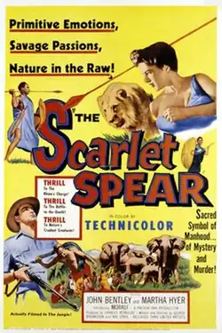 The Scarlet Spear is a 1954 British drama film directed by George P. Breakston and C. Ray Stahl and starring John Bentley and Martha Hyer.[1] It was written by Breakston and Stahl. The cast consisted mostly of Kenyan actors.[2] The plot concerns a British District Officer who tries to prevent a ritual killing.