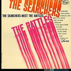 The Searchers Meet The Rattles is the second US live album by English rock band The Searchers (side 1) and the first US LP by German rock band The Rattles (side 2). The Searchers recorded their set in March 1963 at the German Star-Club during their Hamburg residency.[1] The album contains songs that Mercury Records had withheld from its predecessor Hear! Hear!. Songs by The Rattles are taken from their album Twist Im Star-Club Hamburg released in Germany on Philips Records in 1963.[2] The only other country that released The Searchers Meet The Rattles was Canada.[3]