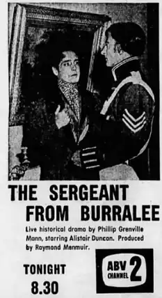 The Sergeant from Burralee is an Australian television play written by Phillip Grenville Mann. The play was also broadcast by the BBC and screened for West German television.[5][6]