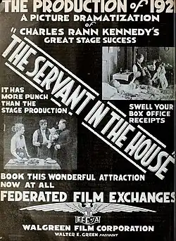 The Servant in the House is a lost[1] 1921 American silent drama film directed by Jack Conway based on a 1908 Broadway play, The Servant in the House by Charles Rann Kennedy.[2]