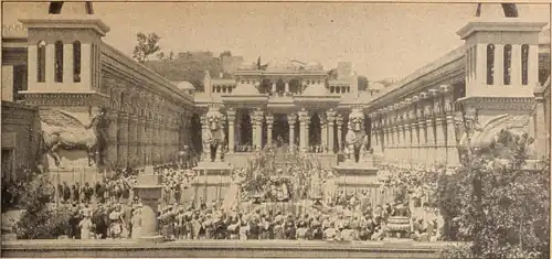 As with many historical films produced by Hollywood studios in the 1920s, including Edwards's earlier Nero (1922), an Italian crew was used;[17] actor Henry Armetta accompanied the production as an interpreter.[18] For The Shepherd King, most of the cast were also Italian.[19] Some scenes were filmed in Rome; Saul's palace was a constructed set, built with the assistance of the Capitoline and Vatican Museums.[4] This structure, measuring 540 by 180 by 60 feet (165 m × 55 m × 18 m), was among the largest built for a film's production at that time.[20] Most exterior scenes, however, were filmed on location in Mandatory Palestine and the Emirate of Transjordan,[4][19] including staging in both Jericho and Jerusalem.[20]