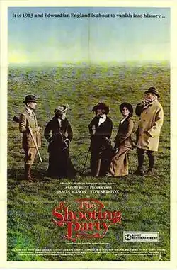 The Shooting Party is a 1984 British drama film directed by Alan Bridges and based on the book of the same name by Isabel Colegate. The film is set in 1913, less than a year before the beginning of the First World War, and shows a vanishing way of life amongst English aristocrats, focusing on a shooting party gathered for pheasant shooting. Their situation is contrasted with the life of the local rural poor, who work on the estate and during the shoot serve as beaters, driving the game.[1] It was entered into the 14th Moscow International Film Festival.[2]