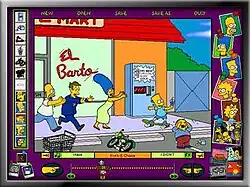 The Simpsons Cartoon Studio is a design program for creating cartoons using characters, sounds, music, and locations from the American animated television series The Simpsons.[1][2] To create a cartoon, one first selects a background, then inserts characters, props, and special effects, and after that adds dialog, sound effects, and music.[3] The program allows users to send the finished cartoons to friends through email[4] or save it onto a hard drive or a floppy disk.[3]
