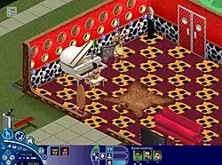 Primarily a content-based expansion, Livin' Large adds 125 new items for Sims to purchase in the 'Buy Mode' of the game. Some items are decorative, and others are interactive.[4] Some interactive items feature additional effects and new non-player characters, including a magic lamp that, when rubbed, spawns a genie that can grant the player wishes with random good or bad outcomes,[5] a chemistry lab that can create potions with positive and negative effects, including turning the drinker into a monster,[6] and a robotic servitor that can assist with housework.[7] Sims can contract a potentially fatal illness from a bite from the guinea pig included in this expansion.[8] The "Vibromatic Heart Bed" allows players to engage their Sims in intimate relationships for the first time in the series,[9] with a male and female Sim in love able to "Vibrate" the bed and then "Play" in it.[10] Doing so will provide a chance that the female Sim will become pregnant with a baby.[11] Livin' Large also features five new career paths: Slacker, Hacker, Journalist, Paranormal and Musician.[5] The expansion expands the default number of lots in the game by increasing the number of neighborhoods.[12]