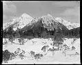 Based on the Köppen climate classification, The Sisters is located in a subpolar oceanic climate zone with long, cold, snowy winters, and cool summers.[5] Weather systems coming off the Gulf of Alaska are forced upwards by the mountains (orographic lift), causing heavy precipitation in the form of rainfall and snowfall. Winter temperatures can drop below 10 °F with wind chill factors below 0 °F.