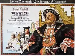 Henry VIII and His Six Wives is a 1972 British historical drama film directed by Waris Hussein, adapted from the 1970 miniseries, The Six Wives of Henry VIII. Keith Michell, who plays Henry VIII in the TV series, reprised his role. His six wives are portrayed by Frances Cuka, Charlotte Rampling, Jane Asher, Jenny Bos, Lynne Frederick, and Barbara Leigh-Hunt. Donald Pleasence portrays Thomas Cromwell and Bernard Hepton portrays Archbishop Thomas Cranmer, a role he had also played in the miniseries and briefly in its follow-up Elizabeth R.[2]
