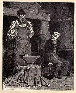 "The Smith and the Devil" is a fairy tale. The story is of a smith who makes a pact with a malevolent being—commonly the Devil (in later times), Death, a demon or a genie—selling his soul for some power, then tricks the devil out of his prize. In one version, the smith gains the power to weld any materials, then uses this power to stick the devil to an immovable object, allowing the smith to renege on the bargain.[1] It is indexed as ATU 330.[2]