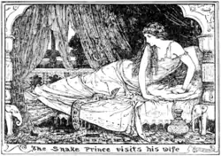 The Snake Prince is an Indian fairy tale, a Punjabi story collected by Major Campbell in Feroshepore. Andrew Lang included it in The Olive Fairy Book (1907).[1][2] The tale is a local form of the cycle of the Animal as Bridegroom or The Search for the Lost Husband, in that a woman marries a man of supernatural origin, loses him and must regain him.