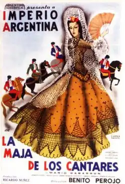 The Songstress (Spanish: La maja de los cantares) is a 1946 Argentine musical comedy film of the classical era of Argentine cinema, directed by Benito Perojo and starring Imperio Argentina and Amadeo Novoa.[1] It is based on a novel by Armando Palacio Valdés. It is set in Andalusia.