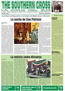 The Southern Cross is an Argentine newspaper founded on January 16, 1875, by Patrick Joseph Dillon (1842–1889), a Roman Catholic priest, editor and politician, born in Tuam, east County Galway, Ireland. Fr. Dillon was appointed a deputy for Buenos Aires Province and president of the Presidential Affairs Commission amongst other positions. He was one of the legislators who proposed Buenos Aires as the federal capital.[1]
