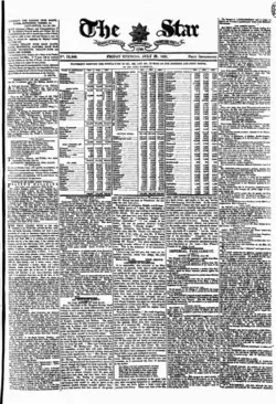 The Star was a London evening newspaper founded on 3 May 1788, originally under the title Star and Evening Advertiser, and was the first daily evening newspaper in the world.[1] The paper ceased publication in 1831, when it was merged into The Albion.[2] Founding sponsors of the new paper included publisher John Murray and William Lane of the Minerva Press.[3]