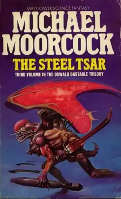 The Steel Tsar is a sci-fi/alternate history novel by Michael Moorcock, first published in 1981 by Granada.[1] Being a sequel to The Warlord of the Air (1971) and The Land Leviathan (1974), it is the final part of Moorcock's A Nomad of the Time Streams trilogy regarding the adventures of Captain Oswald Bastable and which has been seen as an early example of steampunk fiction.[2] The same cover image was used for the 1984 reissue of Judas Priest album Rocka Rolla and also the 1989 video game Ballistix.